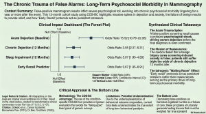 Comment: This prospective cohort is the initial study on false-positive mammograms later followed up about a decade later is this study. The data is staggering: six months after receiving a final benign diagnosis, meaning knowing the original finding was false and that they were now ‘normal’, women with false alarms reported negative changes in existential […]