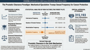 Comment: This updated meta-analysis shows the failure of “sexual activity”—when broadly defined by intercourse frequency (OR = 1.02)—to provide any credible oncological signal, contrasted against the robust protective effect of mechanical prostatic clearance. The findings are unequivocal: while most sexual behaviors are statistical artifacts, ejaculation frequency demonstrates a statistically significant protective effect (OR = 0.83). […]