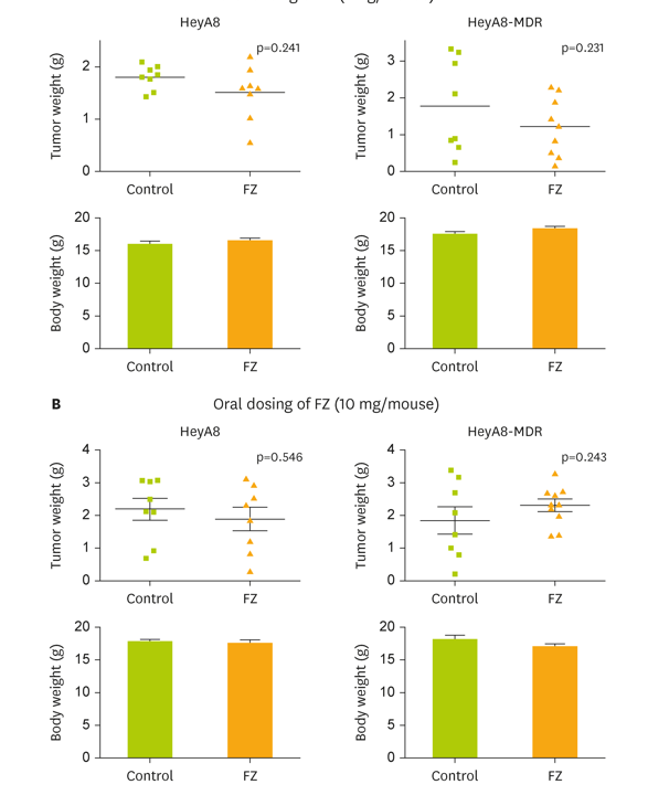 Oral Administration: In xenograft mouse models, oral FZ (at 1 mg/mouse and 10 mg/mouse doses) had no effect on tumor reduction compared to the control group. The paper notes this is likely due to low systemic bioavailability and extensive first-pass metabolism.