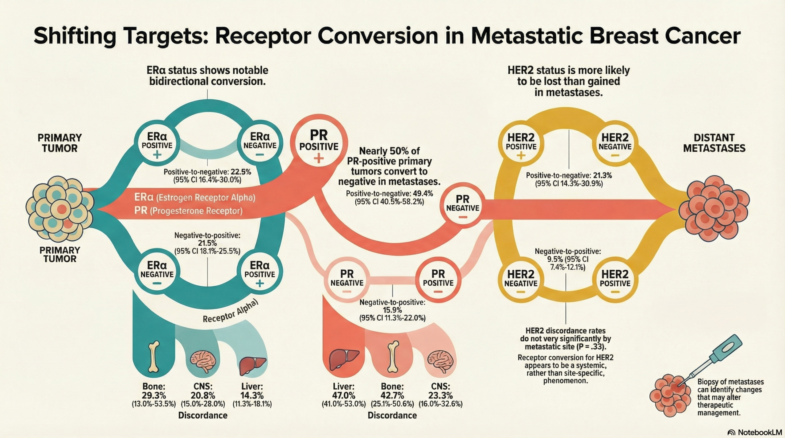 This systematic review and meta-analysis consolidates the global data, providing moderate certainty evidence that the receptor status of a breast cancer is far from static. The findings confirm that the tumor we treat at the metastatic stage is often biologically different from the primary tumor excised years earlier.