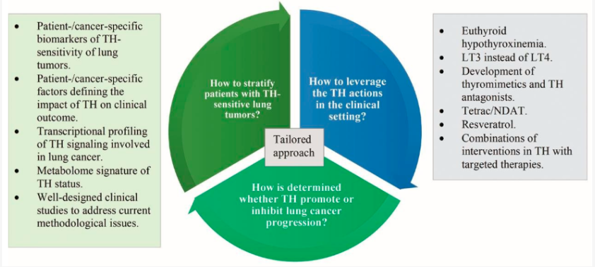 Nonclinical (Lab/Animal) Data: Animal and cell-line studies show conflicting results. In one murine model, T3 injections inhibited metastases, while T4 enhanced tumor growth. Other models confirm that T4 promotes lung cancer growth, an effect that can be blocked by the TH-antagonist tetrac.